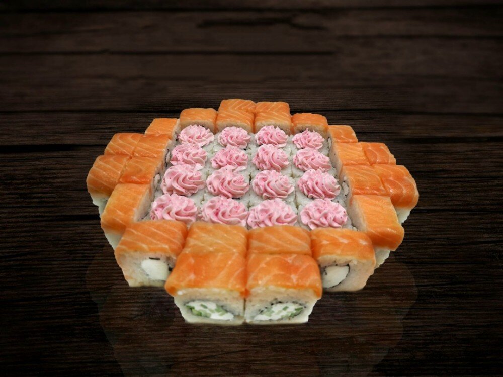 Ролл «Филадельфия», ролл «Филадельфия лайт» х2, ролл «Лава с крабом», ролл «Лава с лососем»